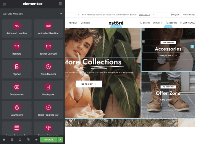 XStore is designed to work with the best page builder in the market with a huge variety of options and settings to manage your website.