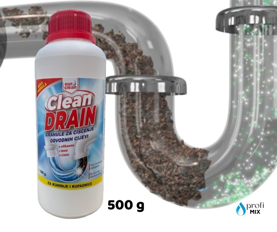 Korištenje Clean Drain granula je brzo i bez napora. Dovoljno je usuti 2 čepa proizvoda izravno u odvod, zatim ih zaliti s dovoljnom količinom vruće vode. Nakon 10 minuta djelovanja, sustav isprati hladnom vodom kako bi se otpad u potpunosti uklonio i odvod oslobodio. Proizvod dolazi u pakiranju od 500 g, što omogućuje više primjena ovisno o potrebi.