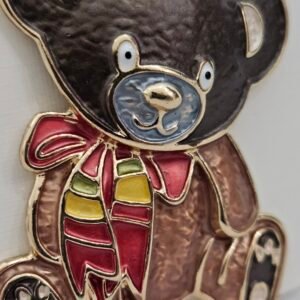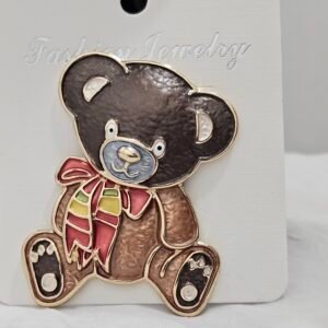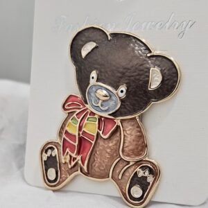 Presladak motiv mede sa šarenom maramom savršen je detalj za kaput, šal ili torbu, a idealan je i kao poklon koji donosi osmijeh.